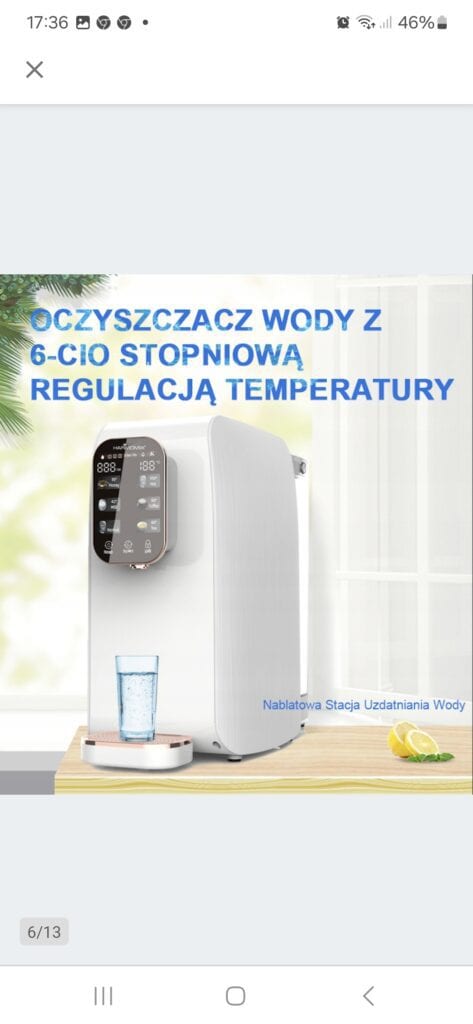 Na blatowy filtr do wody działa na zasadzie odwróconej osmozy dodatkowo mineralizuje wodę .
